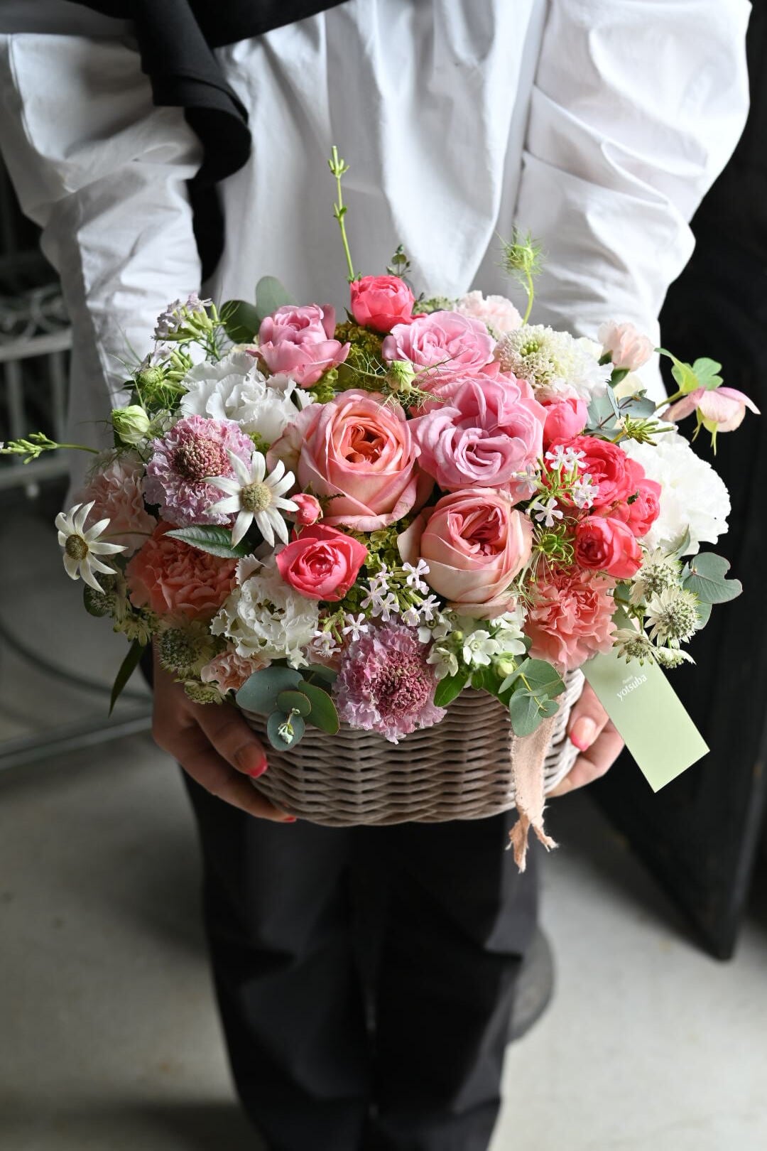 バスケットにアレンジした可愛らしいお花たち。お花好きなお母様も喜んでくれること間違いなし!特別な母の日の贈り物になりますよ。