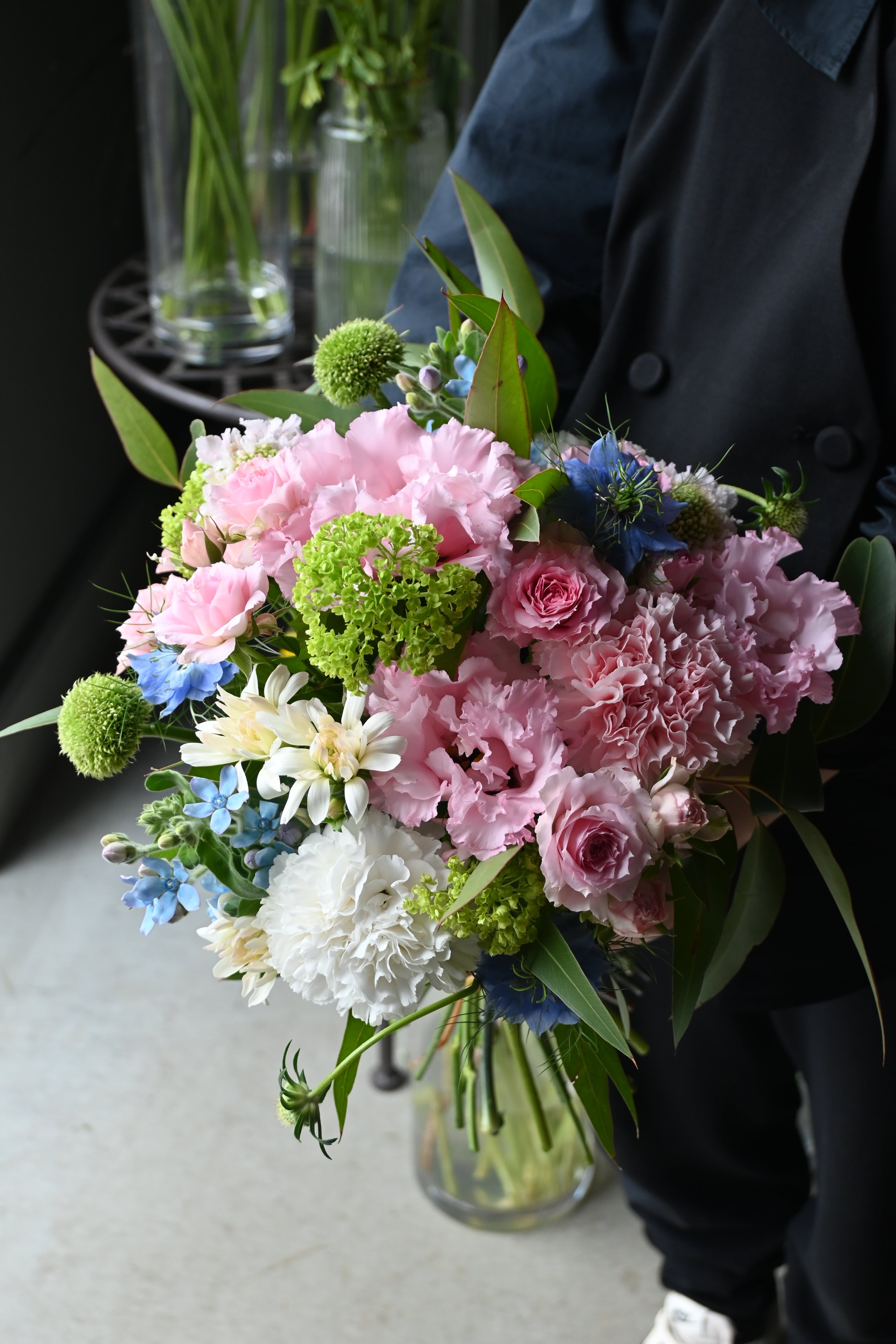 写真の花瓶に合わせてお作りしていますので、そのままこちらにいれて飾っていただけます。