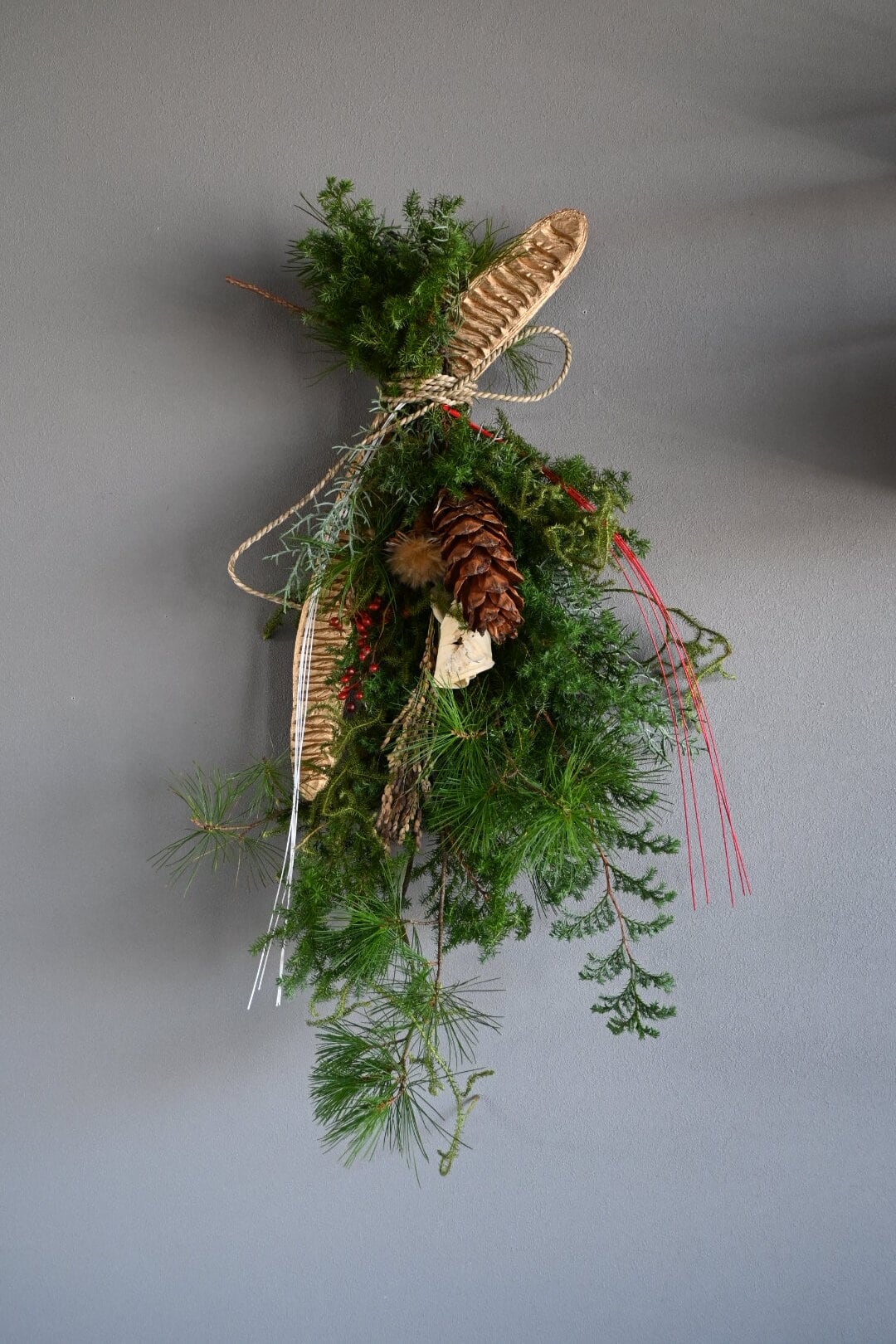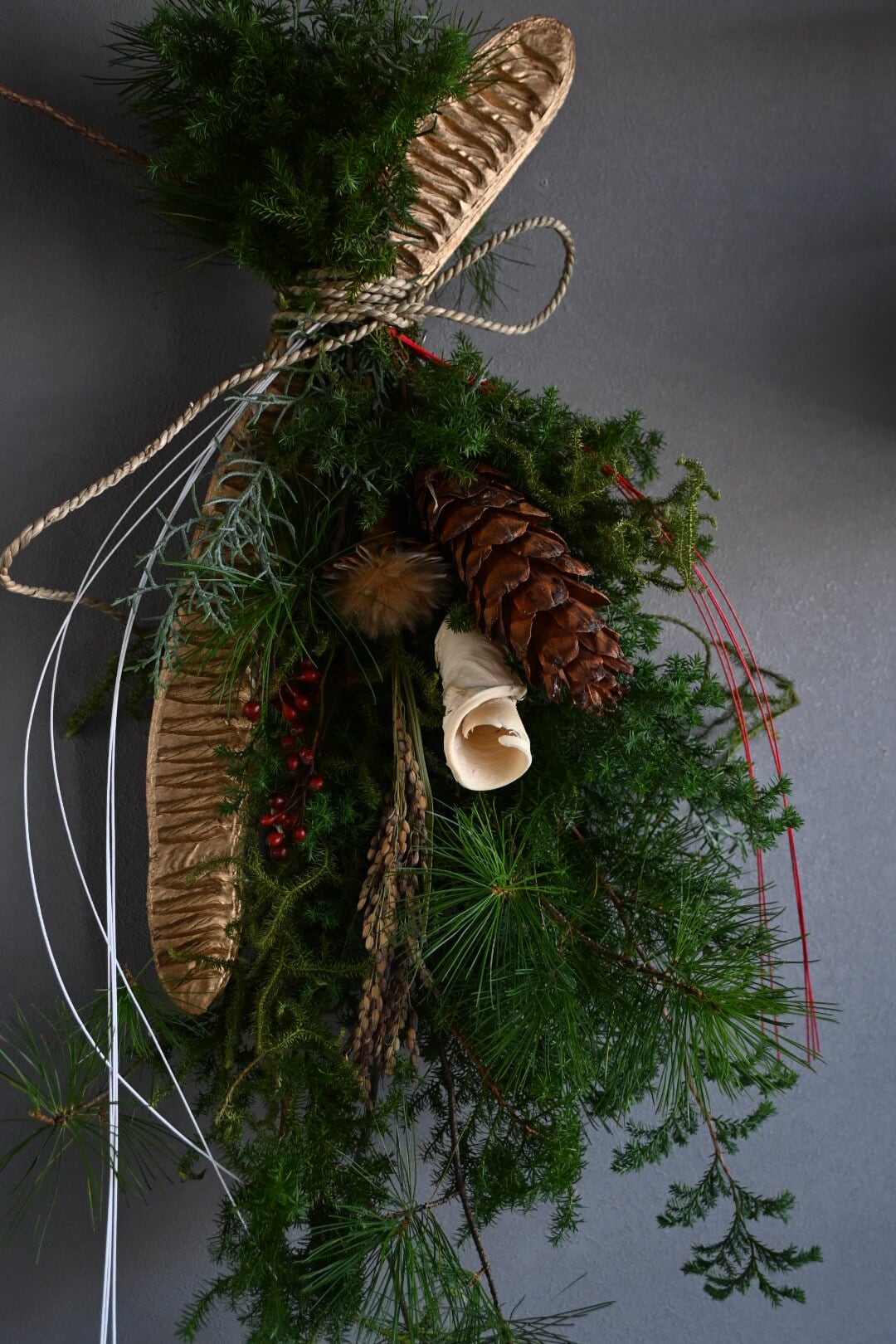 お飾りいただく過程で一部の植物はドライの状態になり、風合いが変化していく商品となります。